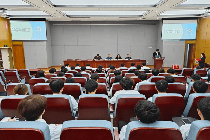 9月25日下午,电气与电子工程学院于敏行楼B报告厅召开第八次学生代表大会。学院党委副书记、纪委书记尚磊老师,学院团委书记张成孜老师,团委副书记洪乃羽老师,学生会指导老师陈磊新老师出席会议,学院部分学生代表参加会议。会议由艺术中心负责人赵心怡主持。
