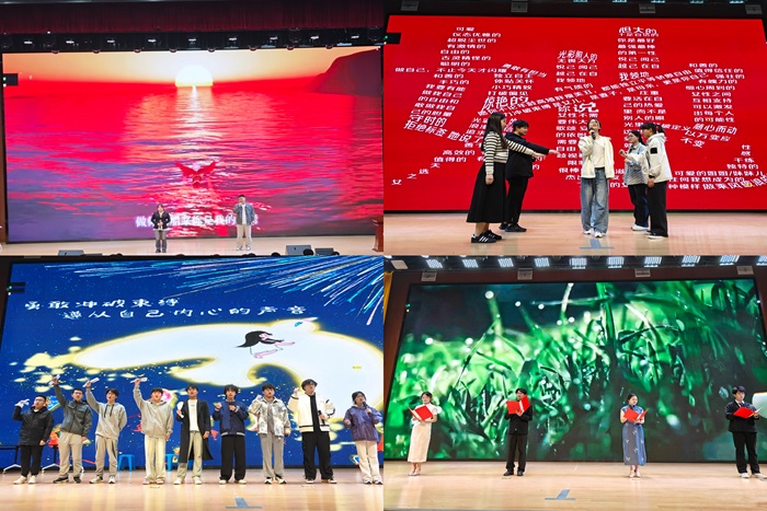 暖场演出环节精彩纷呈。活力四射的开场舞《Drama》点燃现场热情歌曲对唱《是你》以美妙和声展现音乐魅力配乐诗朗诵《青春》引发观众强烈的情感共鸣,激励青年学子勇敢追梦。心理情景剧大赛中,各参赛团队通过跌宕起伏的剧情设计和极具张力的舞台表现,生动展现了大学生在学业压力、人际交往、自我认知等场景中的心理路程与成长蜕变。