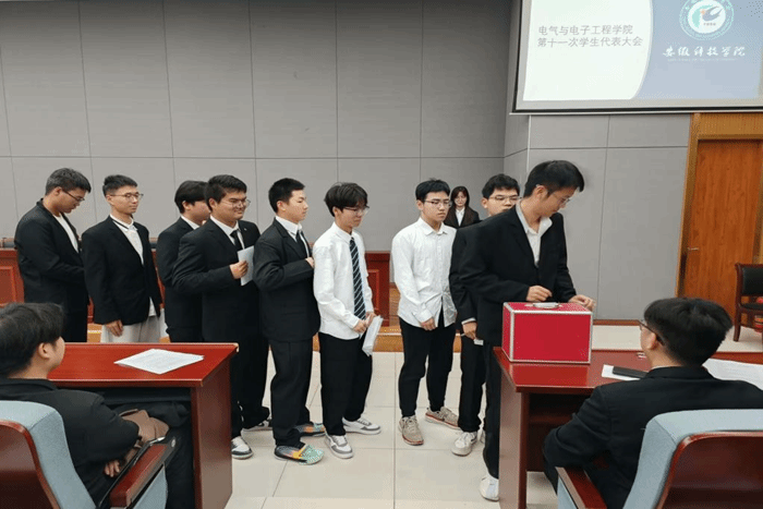 第十届学生会主席团成员褚佳美作工作报告,她全面回顾了过去的工作,提出了工作中存在的问题,并明确了下一步努力方向。第十一届学生会主席团候选人罗天佑宣读了《安博站·官方版网站登录入口电气电子工程学院学生会章程》。大会审议通过《电气与电子工程学院第九届学生会委员会委员选举办法(草案)》《电气与电子工程学院第十一次学生代表大会总监票人、监票人建议名单(草案)》,选举产生了第九届学生会委员会委员和第十一届主席团成员。
