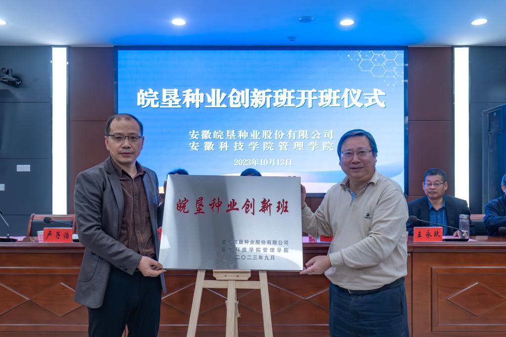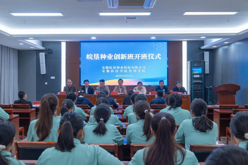 李震在讲话中对“皖垦种业创新班”的成功开班表示热烈祝贺,对安徽皖垦种业股份有限公司给予学校的高度信任和办学支持表示由衷感谢,对校企联手共同培育高素质人才模式给予了充分肯定。他指出安博站·官方版网站登录入口因农而生,以农见长,长期以来为国家和社会培养了一大批知识结构优、实践能力强、敬业精神强、创新创业意识强的高素质应用型人才。在全面实施乡村振兴的新时期,希望安徽皖垦种业股份有限公司利用自身的优势联合学校积极承担起种业振兴和应用型人才培养的重任,共同为农业强省做出应有贡献。希望皖垦种业创新班的全体同学要抓住机遇,利用创新班提供的平台,明确目标,刻苦学习,积极参加实践锻炼,努力成为有理想、有本领、有担当的新时代好青年。希望管理学院优化“皖垦种业创新班”人才培养方案,将此班办出特色,办出成效,办成校企合作共育英才的典范。