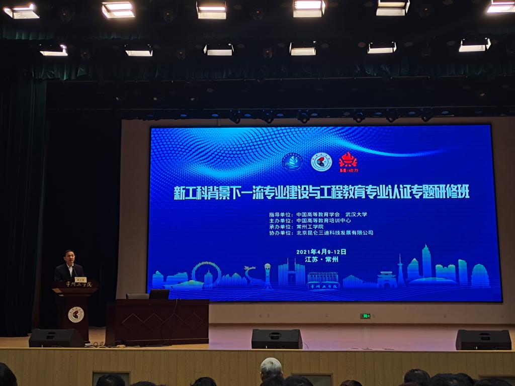 4月9日至11日,由中国高等教育学会、武汉大学指导,中国高等教育培训中心主办的“新工科背景下一流专业建设与工程教育专业认证专题研修班”在常州工学院举办。来自全国140多所高校教务处、相关院系负责人,教学团队、专业和课程负责人、骨干教师等600余人参加研修。我校教师陈君华、樊晓宇、蔡永兵、刘健健及教务处相关人员参加培训。