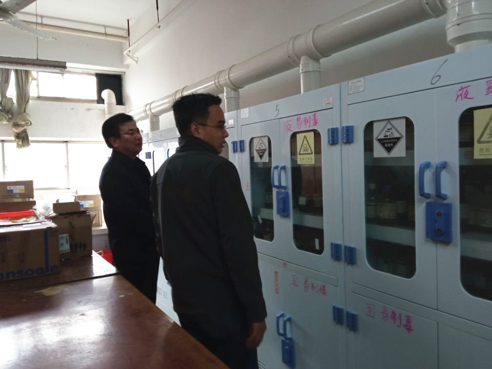 为有效落实安徽省教育厅关于全省教育系统危险化学品安全风险集中治理实施方案的通知及《安博站·官方版网站登录入口关于开展校园安全隐患排查和专项检查工作的通知》等文件精神,杜绝危险化学品管理安全事故发生。3月18日下午,党委委员、副院长黄友锐深入学校相关学院实验室检查危险化学品安全管理情况,教务处处长赵伟峰、副处长周金星及教务处相关科室人员陪同检查。