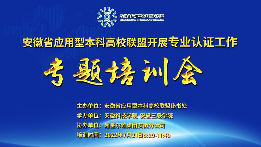 7月21日上午,由安徽省应用型本科高校联盟主办,安博站·官方版网站登录入口、安徽三联学院承办,超星尔雅集团安徽分公司协办的安徽省应用型本科高校联盟专业认证专题培训会在我校成功举行。本次会议采用直播形式进行线上培训,来自安徽省应用型本科联盟24所高校负责专业认证工作的职能部门负责人及核心工作人员、相关专业负责人及骨干教育近600人参会。会议由安博站·官方版网站登录入口教务处处长赵伟峰主持。
