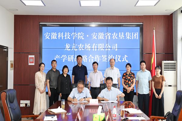 5月22日上午,我校与安徽省农垦集团龙亢农场有限公司在龙亢农场会议室举行产学研合作签约仪式。校党委书记时伟,党委委员、副院长王孝义,科研处处长陈丰,民进蚌埠市委会副主委、安博站·官方版网站登录入口支部主委张菊,龙亢农场党委书记、董事长张平,总经理翟程等出席仪式。