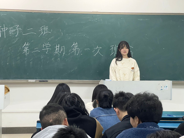 种子222班班长邢雨洁对上学期班级工作及获得的荣誉情况进行了总结回顾,对新学期的工作进行了展望。邢雨洁要求全体同学团结一致,积极参加班级组织化学习,积极开展志愿服务、积极参与团学活动,创建优良学风班风,为争创学习型班集体、文明班集体、先进团支部而共同努力。
