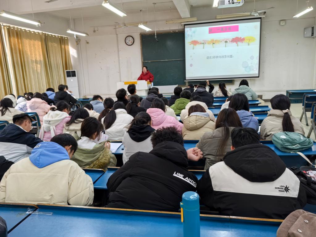 辅导员老师向同学们普及了大学生必要的安全知识和技能,重点引导同学们关注自我安全,尤其对大学生心理健康安全作了反复强调,希望同学们在校学习、生活和人际交往等方面遇到问题时,如果短时间内自我调节能力难以应对,应及时寻求同学和老师的帮助,正确应对学业压力、情感压力、就业压力、人际压力等;辅导员老师还通过一些事例让同学们体会生命的珍贵,尊重生命的存在,认识生命的责任,促进形成积极向上的生命观。