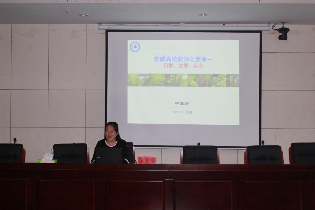 为进一步加强教师师德师风建设,弘扬立德树人奋进担当精神,根据学校教师节庆祝活动工作安排,2020年9月8日-9日,在会议中心第一报告厅,农学院毕亚玲博士、人文学院姚大怀博士分别作了题为《忠诚高校教师之使命——启智、立德、有为》、《师者的“三从四德”》的师德教育专题报告。近五年入职新教师参加了报告会。报告会由党委教师工作部副部长詹学文主持。