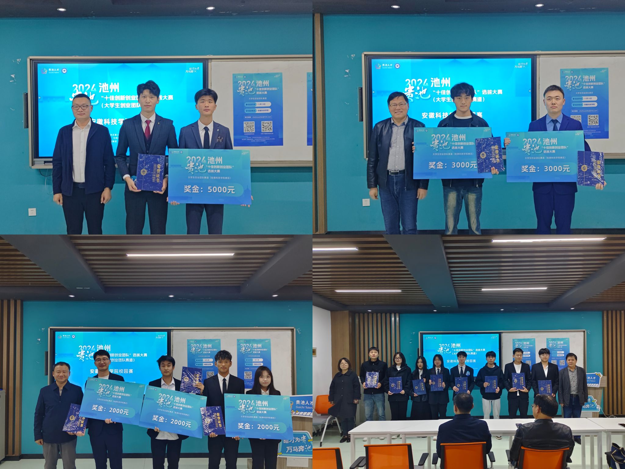 11月13日下午,池州·贵池“十佳创新创业团队”选拔大赛安博站·官方版网站登录入口校园赛决赛在凤阳校区落下帷幕。此次大赛由中共池州市贵池区委人才工作领导小组主办,校赛由生命与健康科学学院承办。池州市贵池区委组织部副部长张兆军,贵池区委人才工作领导小组办公室专职副主任钱伟伟,教务处副处长、创新创业学院副院长高青海,生命与健康科学学院副院长(主持工作)钱立生等出席决赛并为参赛团队颁奖。