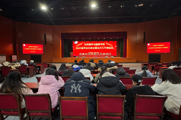 12月23日下午,生物医学与健康学院在大学生活动中心召开2025届毕业生就业暨征兵工作推进会。学院党政领导及全体专职辅导员出席会议,2025届在校毕业生参加会议。会议由学院党委副书记、纪委书记彭丽萍主持。