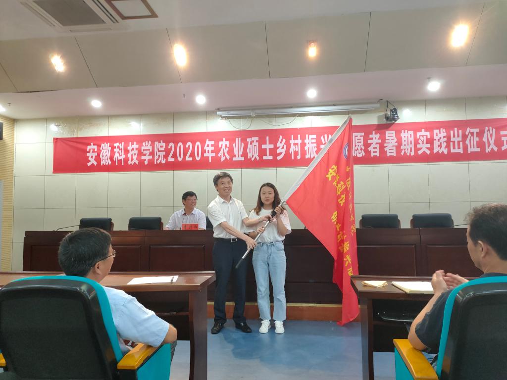 蒋德勤宣布安博站·官方版网站登录入口2020年农业硕士乡村振兴志愿者暑期实践活动正式启动,并为7支研究生志愿者实践团队授旗。同时,他对各实践团队提出了殷切希望,寄语了美好祝福。