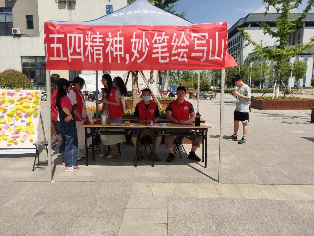 龙湖校区,志愿者们举办了“弘扬五四精神,妙笔绘写山河”的留言板记录活动。五四青年节到来之际,为牢记史册,不负青春,不负韶华,同学们牢记党的教诲,立志民族复兴,纷纷用语言描写出对祖国对人民的美好祝愿和对自己的铿锵誓言,用画笔描绘出祖国的大好山河。他们表示一定会积极学习文化知识,用自己的实际行动争取跑出当代青年的最好成绩,谱写中国青年的美好篇章。