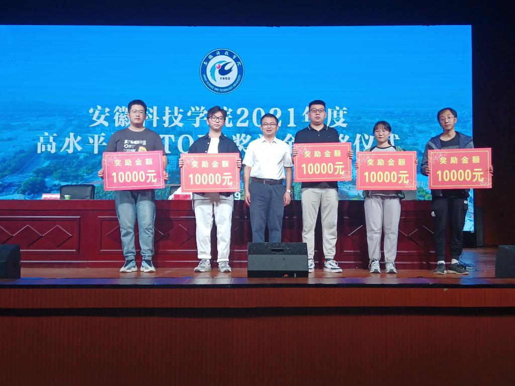 为鼓励和表彰过去一年来在学术研究方面取得重大成果的在校研究生,9月28日下午,2021年度高水平论文TOP5校友奖学金颁奖仪式在凤阳校区大学生活动中心隆重举行。校党委委员、副院长李升和,江南大学至善学院院长、我校1996级校友刘立明教授出席颁奖仪式,仪式由党委研究生工作部部长、研究生处处长张春雨主持。