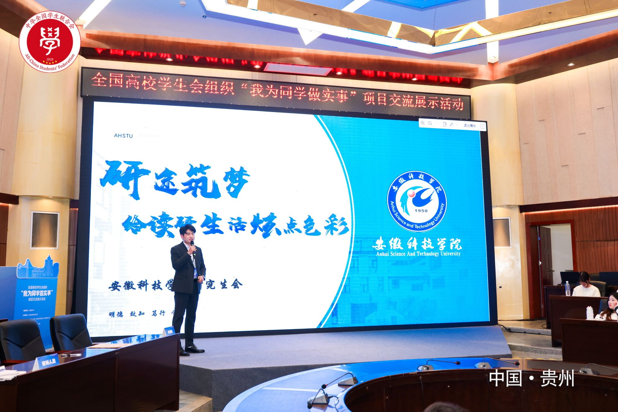 日前,由共青团中央指导,全国学联主办,共青团贵州省委、贵州省学联、贵州师范大学承办的全国高校学生会组织“我为同学做实事”项目交流展示活动在贵州师范大学隆重举行。活动聚焦“学思想·做实事·树新风”主题,通过学校自荐、省级推报、全国遴选,我校研究生会“研途筑梦”我为同学做实事项目从来自全国1724所高校的3581个项目中脱颖而出,荣获“优秀项目”(全国 300 项)。