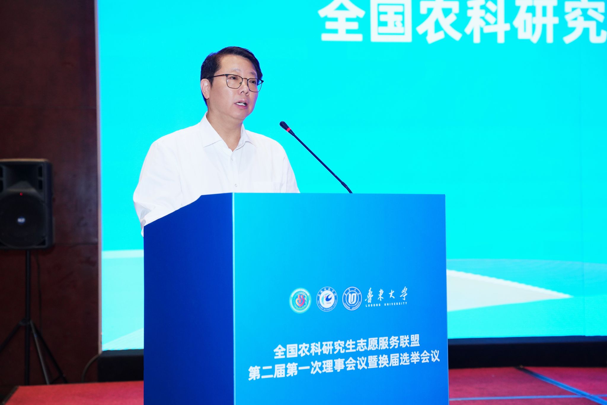 李升和代表联盟第一届理事会作工作报告。他指出,联盟自成立以来,始终以“志愿服务助力乡村振兴,青年成长开创美好未来”为宗旨,为农科研究生投身“三农”事业搭建了坚实平台,客观剖析发展中的不足,为新一届理事会工作提供了重要参考。他在就职发言中承诺,将带领新一届理事会坚守联盟初心,通过整合资源、创新举措,推动志愿服务工作提质增效;4位轮值主席依次进行了发言表态,分享对联盟发展的规划与担当。鲁东大学研究生院院长、轮值主席亓朋在大会总结中强调,本次会议既是规范有序的换届大会,更是凝聚共识、谋划未来的动员大会,为联盟下一步发展奠定了坚实基础。