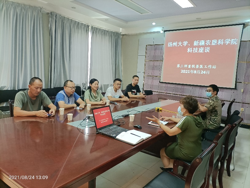 2021年8月下旬,党员博士团在指导老师王梦芝教授的带领下来到了石河子农垦科学院,与该院师生进行了科技座谈会,一同探讨新疆畜牧业发展中存在的问题与解决措施,党员博士团成员就目前新疆畜牧业发展的问题与在座的同行纷纷表达了自己的建议和想法,以期能为新疆的乡村振兴发展贡献自己的力量。