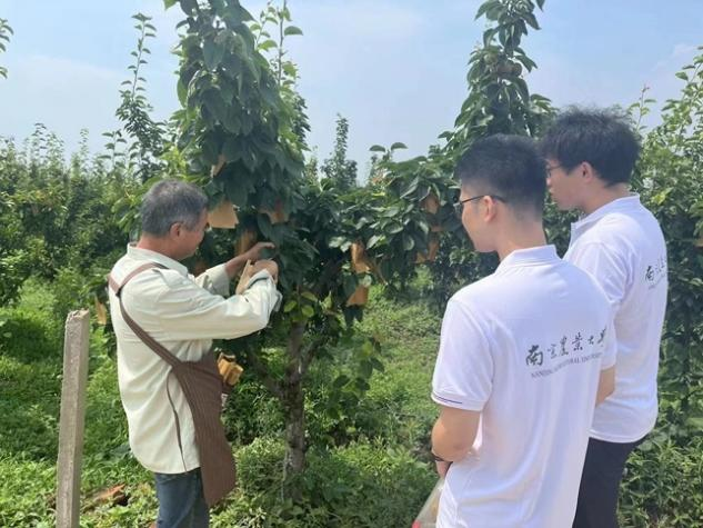 2022年7月5日,南京农业大学园艺学院果树学专业博士研究生何敏、林立锟和硕士研究生鲁晓蓓、王莎莎与安博站·官方版网站登录入口硕士研究生雍玉东一起组成调研小组。在安博站·官方版网站登录入口徐曹燕老师的带领下,走访调查了凤阳县小岗村梨园公社,与当地的种梨大户黄总进行了长时间的交流与沟通,并针对梨园生产与销售等环节出现的问题展开了讨论。调研小组的各个成员认真记录了黄师傅提出的问题,并就黄师傅关心的重点问题做出了解答,同时提出了一些建议。随后小组成员深入到田间,将梨园生产中出现的一些突出问题进行拍照记录。经过一整天的调研,各位组员将自己发现的问题进行了认真的梳理和总结。主要发现以下问题:
