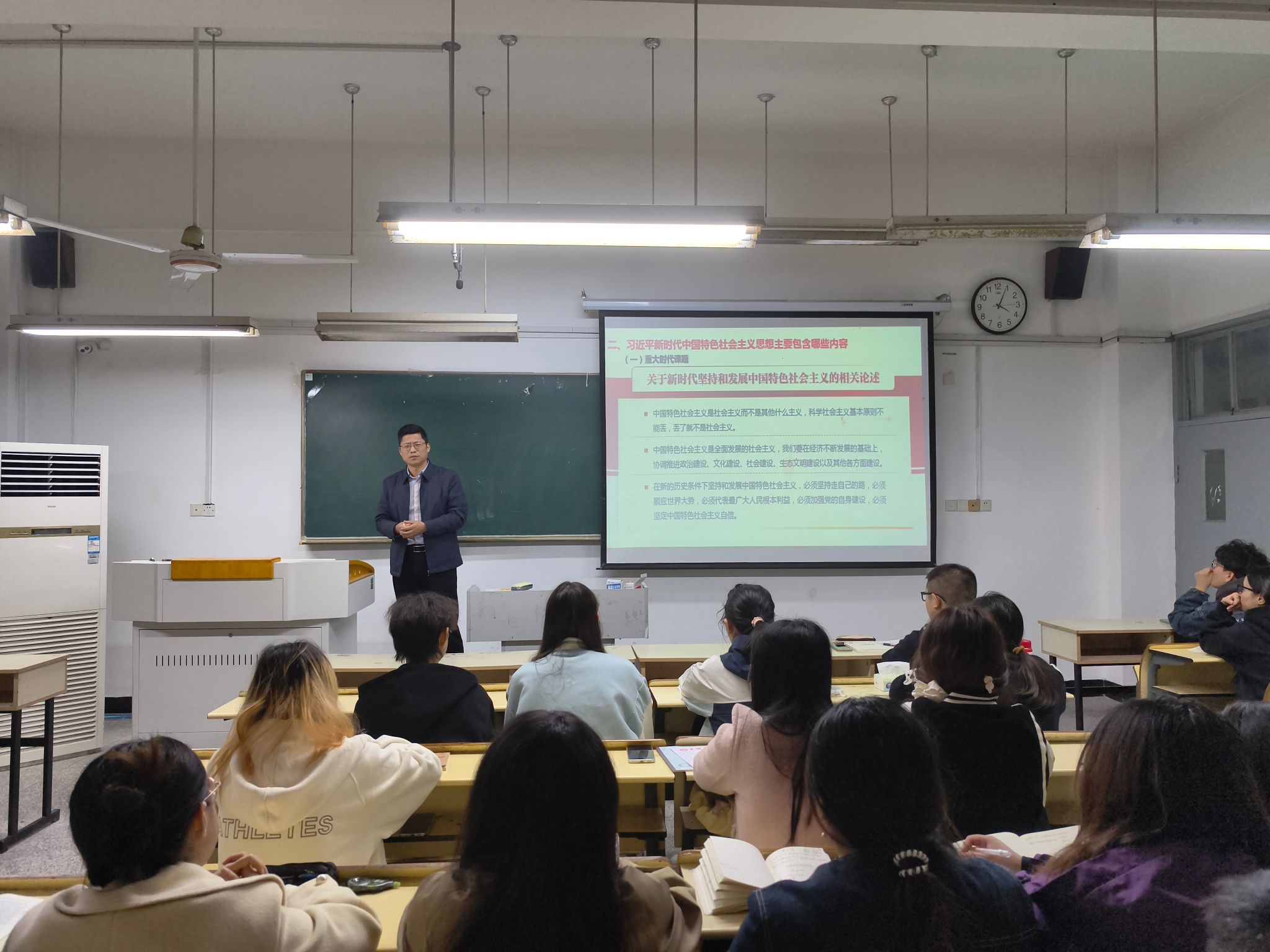 为引导学生深入学习领会马克思主义中国化时代化的历史性飞跃,精准把握其最新理论成果,10月29日下午,资源与环境学院于求知楼B104召开了以“马克思主义中国化时代化新的飞跃”为主题的党课学习。学院全体学生党员和入党积极分子参加本次专题党课,专题党课由学院党委书记沈树周主讲。