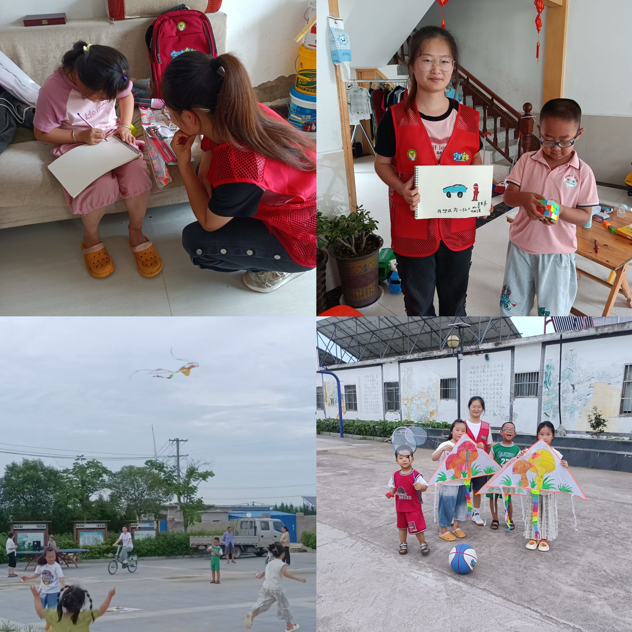 活动初期,由定远县妇女联合会牵头,为每位志愿者采购五份“爱心行囊”,供志愿者分发给贫困留守儿童。7月15日至20日分别为三和集镇尚庄村五位贫困留守儿童送上礼物,并指导他们绘画写字,为他们送上心灵上的温暖。同时,志愿者们给留守儿童们科普了心理健康知识,带领儿童做心理拓展游戏,希望他们能保持积极乐观的学习和生活态度,