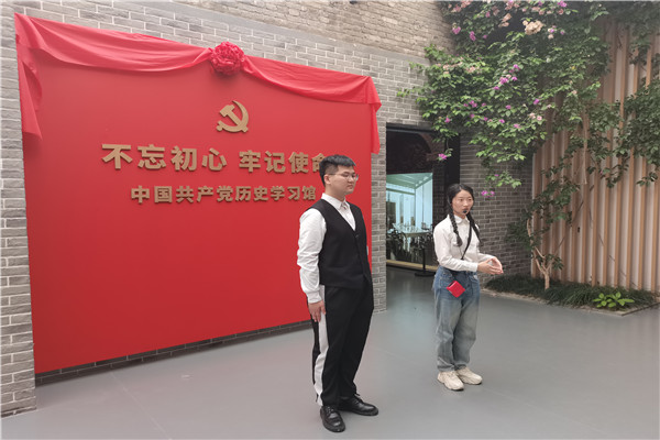 在学习馆大厅,全体党员面向党旗宣誓,重温入党誓词。全体党员高举右拳,面向鲜红的中国共产党党旗庄严宣誓,用铿锵有力的誓词表达对党的忠诚,时刻警醒自己,不忘初心、牢记使命。