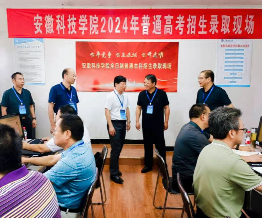 7月26日下午,我校安徽省普通本科批次阅档录取工作正式开始。校党委书记时伟,校党委委员、副院长李升和,校党委委员、副院长王孝义检查指导招生录取工作。
