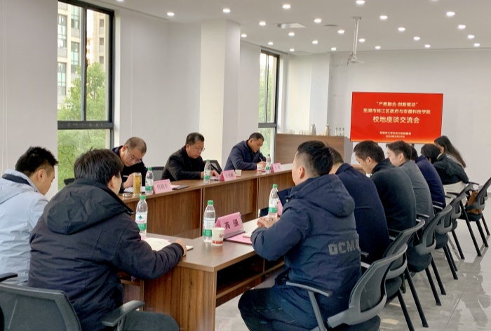 校地合作座谈会上,鸠江区委副书记、组织部部长孙安平简要介绍了鸠江区经济社会发展情况,对学校长期以来给予鸠江区全方位深层次支持表示感谢,对校地双方长期合作取得的成果表示赞赏。何晓冬简单介绍了学校办学历史沿革和事业发展成就,对鸠江区定期进校招聘纳才表示感谢,并邀请区委、区政府领导多来学校宣讲招聘。何世潮、张程介绍了学院基本情况以及毕业生就业意愿,并就有关产学研合作项目和实习就业基地建设达成共识。鸠江区委人才工作局、农业农村局、人社局、鲲鹏人才集团、芜湖市大学生实习实践基地负责人就乡村振兴人才引进、就业政策、实习基地等作了介绍。