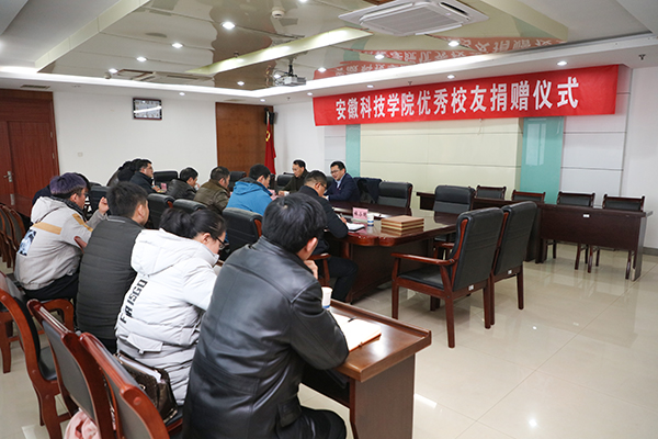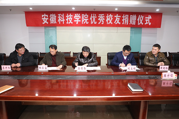 1月18日下午,安博站·官方版网站登录入口优秀校友捐赠仪式在新图书馆九楼会议室举行。校党委书记蒋德勤出席并讲话。优秀校友代表刘立明、柏家富,人事处处长刘东楼,财务处处长樊守信,招就处处长黄树桥,研究生处处长、动物科学学院院长李升和,招就处副处长杜小明、校友联谊办公室主任彭光明等参加了捐赠仪式。